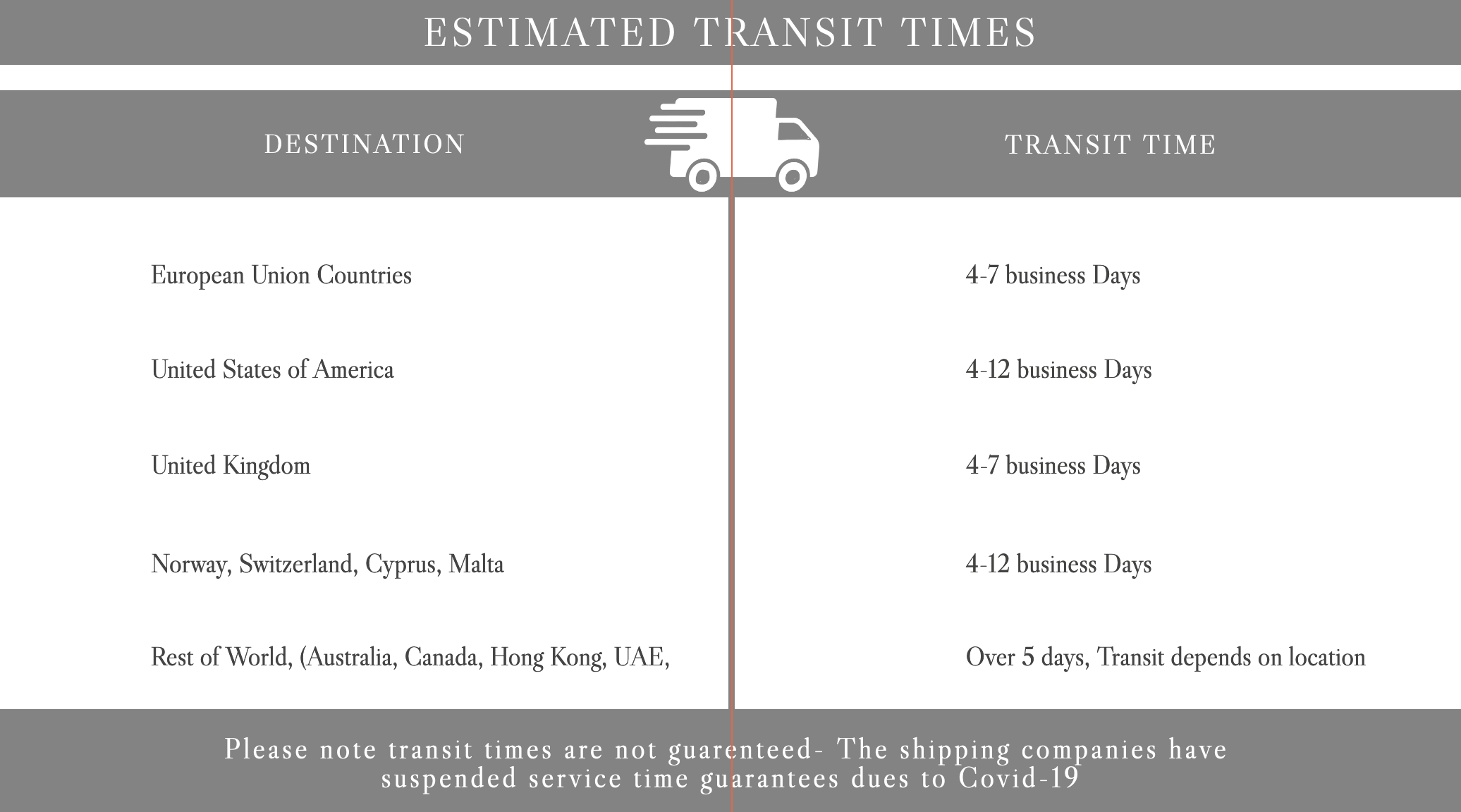 ESTIMATED TRANSIT TIMES